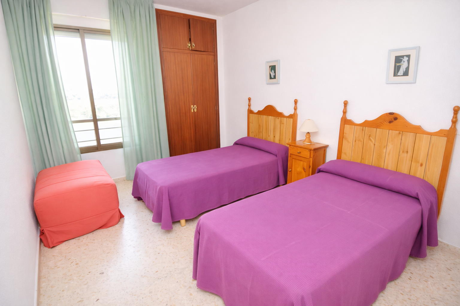 Mieszkanie składa się z dwóch sypialni i łazienki, funkcjonalnie rozplanowanych, aby jak najlepiej wykorzystać dostępną przestrzeń. Salon wychodzi na prywatny, zadaszony taras, idealny do relaksu przy podziwianiu morza lub korzystaniu ze słonecznej pogody regionu. Dodatkowo apartament posiada wbudowane szafy, które optymalizują przechowywanie i ułatwiają organizację.
