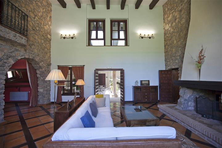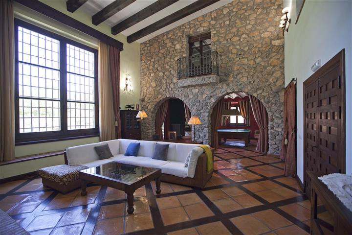 Na wznętrze nieruchomości składa sie przestronny salon z wysokimi sufitami, do którego wchodzi się przez salę do bilardu francuskiego, sypialnia i duża kuchnia z piecem opalanym drewnem i barem, a także sala bankietowa. Łącznie znajduje się tu siedem sypialni, każda z własną łazienką (sypialnia główna z wanną do hydromasażu) i telewizorem. Wśród instalacji i wykończeń o doskonałej jakości znajdziemy kominek, klimatyzację, ogrzewanie, wstępną instalację spa i wiele innych.