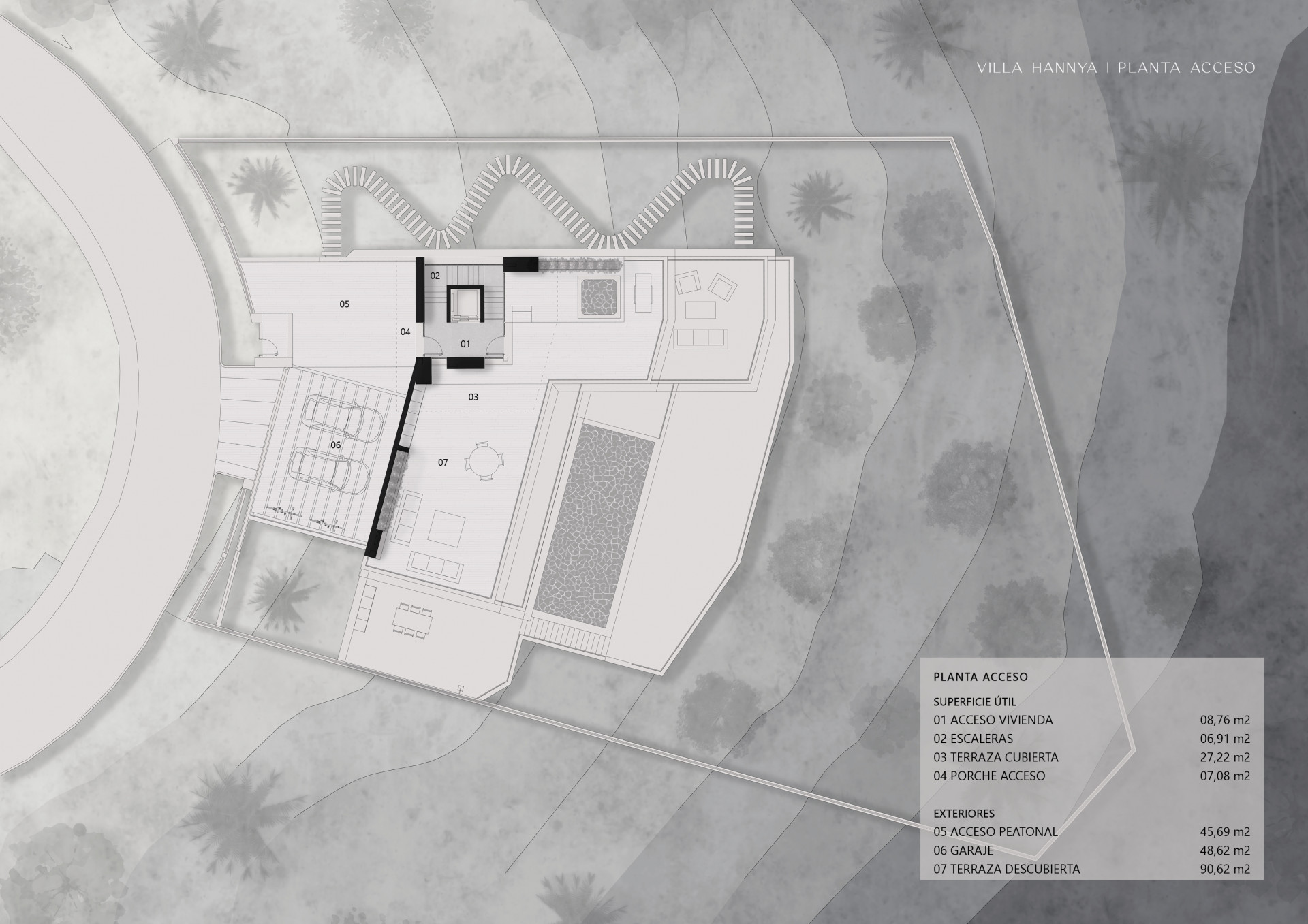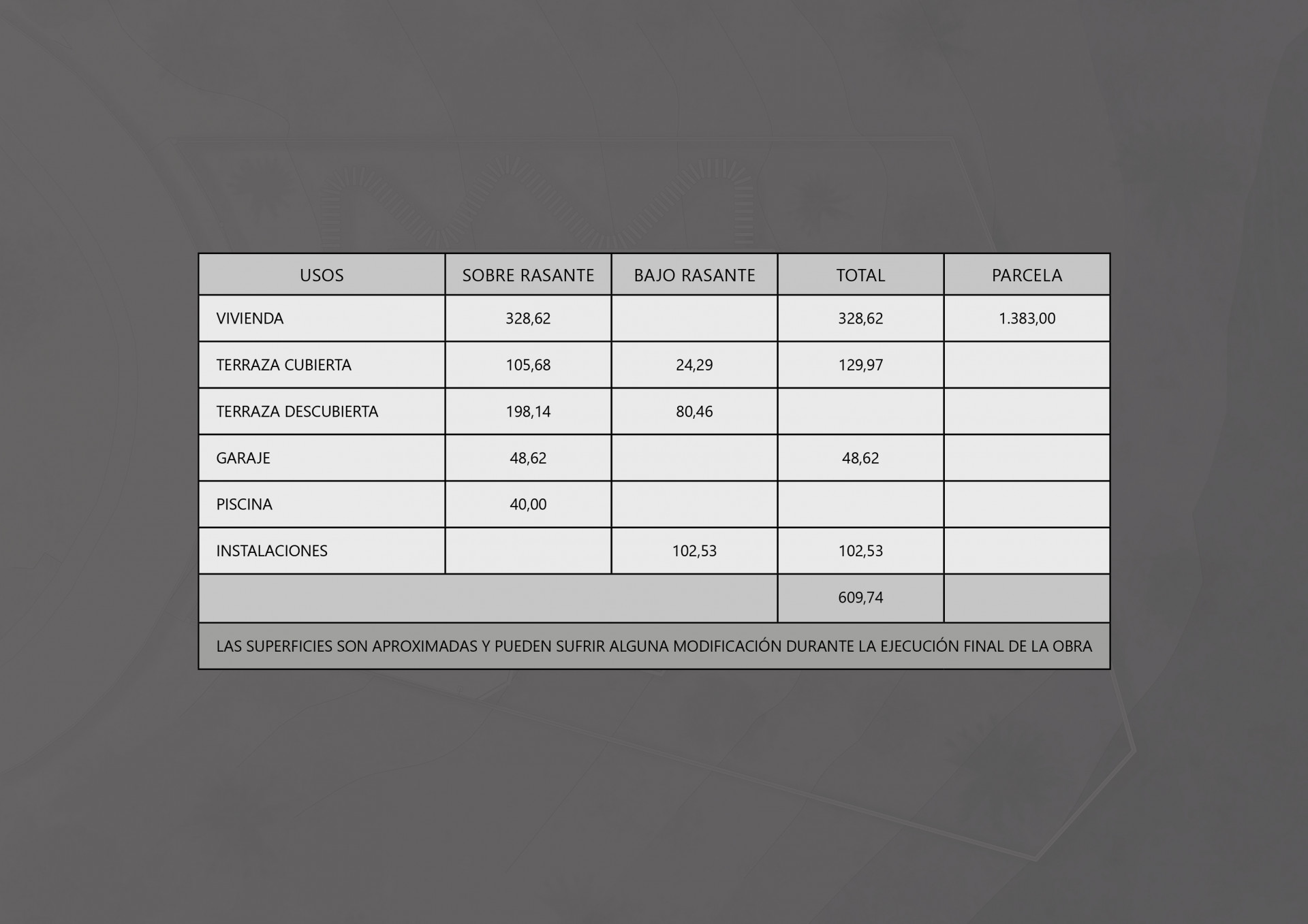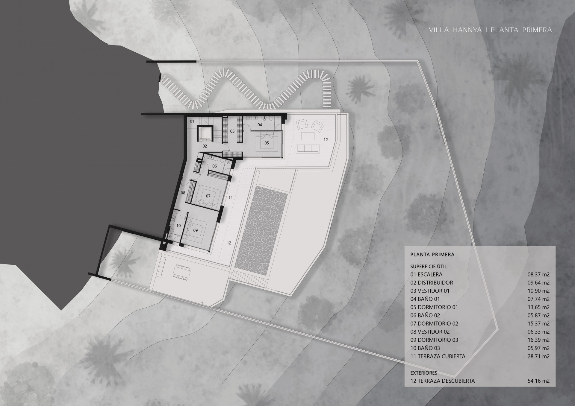 Willa została wybudowana na działce o powierzchni 1.383 m² i oferuje 328 m² powierzchni mieszkalnej, co gwarantuje przestronny i komfortowy styl życia. Dodatkowo posiada taras o powierzchni około 130 m², idealny do korzystania z śródziemnomorskiego klimatu i panoramicznych widoków.