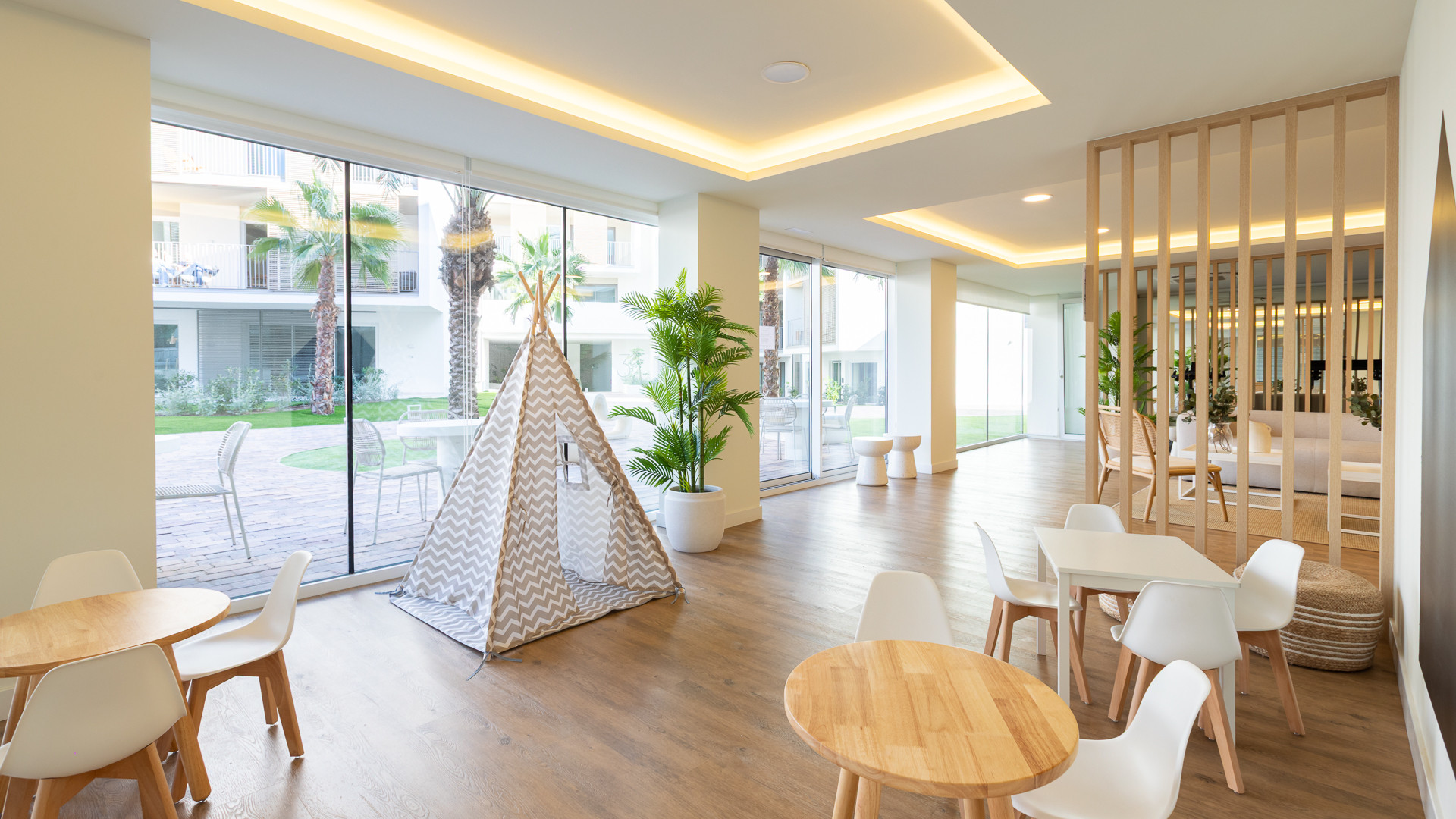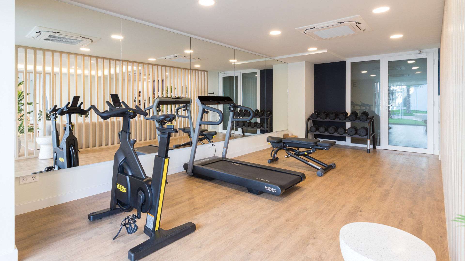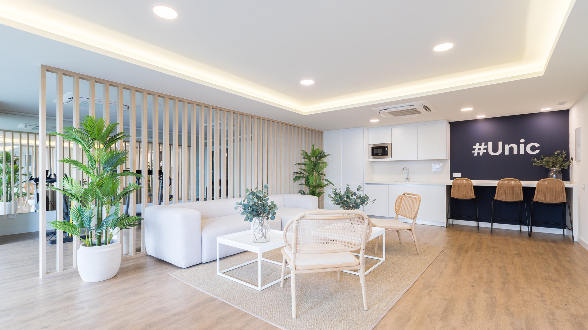 W częściach wspólnych mieszkańcy mogą korzystać z odkrytego basenu oraz basenu krytego, a także w pełni wyposażonej siłowni i starannie utrzymanych ogrodów. Budynek posiada windę oraz przystosowany jest dla osób z ograniczoną mobilnością, co gwarantuje dostępność dla wszystkich. System klimatyzacji (ogrzewania i chłodzenia) jest kanałowy i niezależny dla każdego domu, a produkcja ciepłej wody użytkowej za pomocą wysoce energooszczędnego wspólnego systemu aerotermalnego gwarantuje maksymalny komfort przez cały rok.