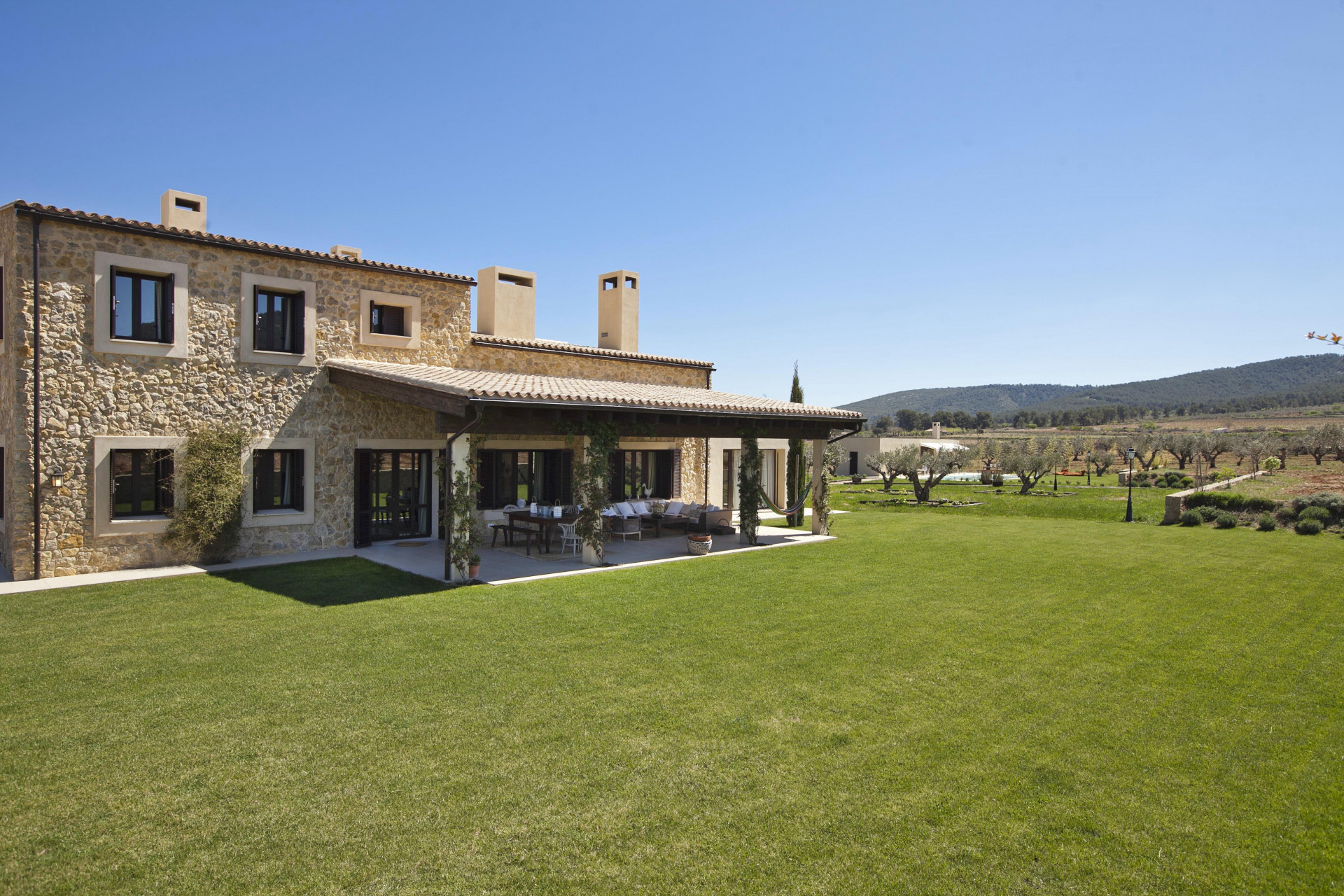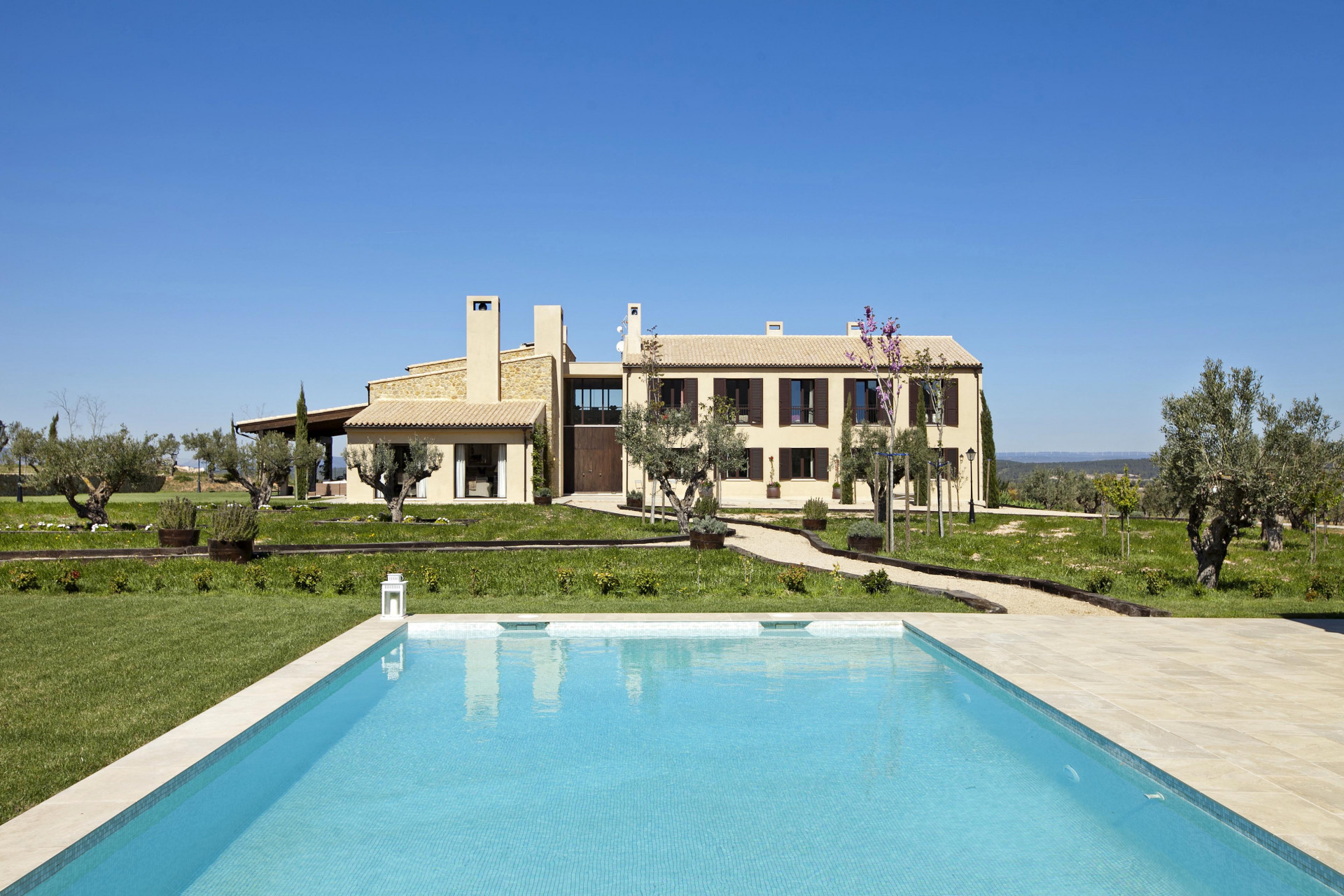 Posiadłość rozciąga się na spisek ponad 50 000 m2, otoczony przez drzewa oliwne i winnice, i ma duży basen na świeżym powietrzu w pobliżu sto m2. Posiada również paellero i obszar barbecue, wyposażony w stół i ławki, idealny do korzystania z posiłków na zewnątrz. Z szerokiego ganku można rozważać panoramiczne poglądy krajobrazów, które charakteryzują ten obszar.
