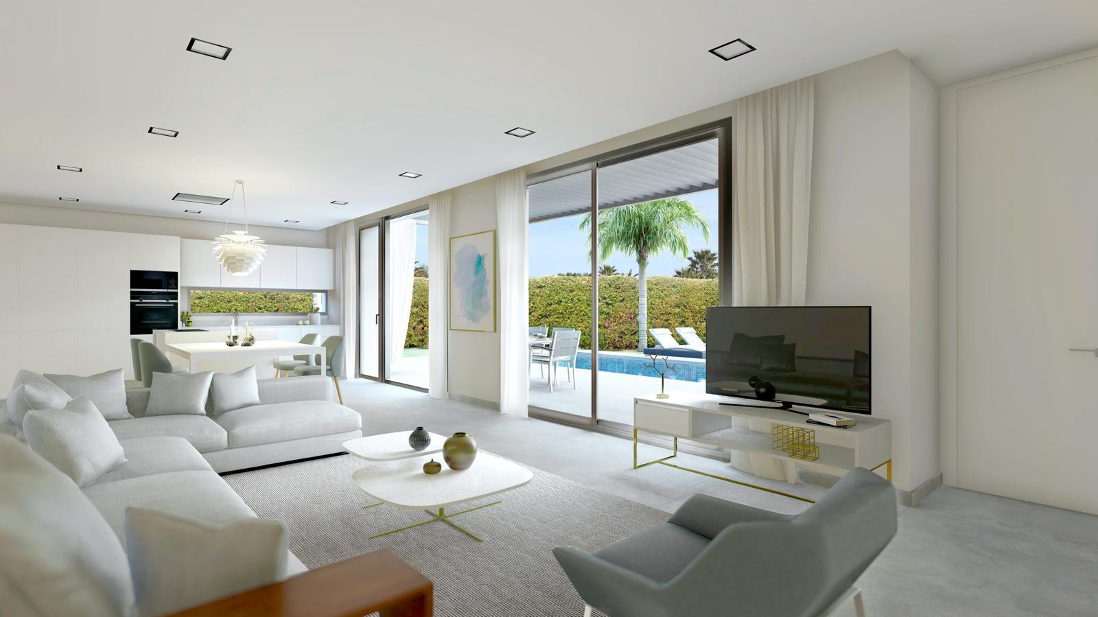 Esential House jest unikalny dom mieszkalny rodziny z 3 lub 4 sypialnie i 3 pełne łazienki, dwa z nich w apartamencie. Place, od 590 do 700 m2, są zorientowane na południe i oferują piękne widoki na morze i góry, z jasnością, że zalewa każdy pobyt.