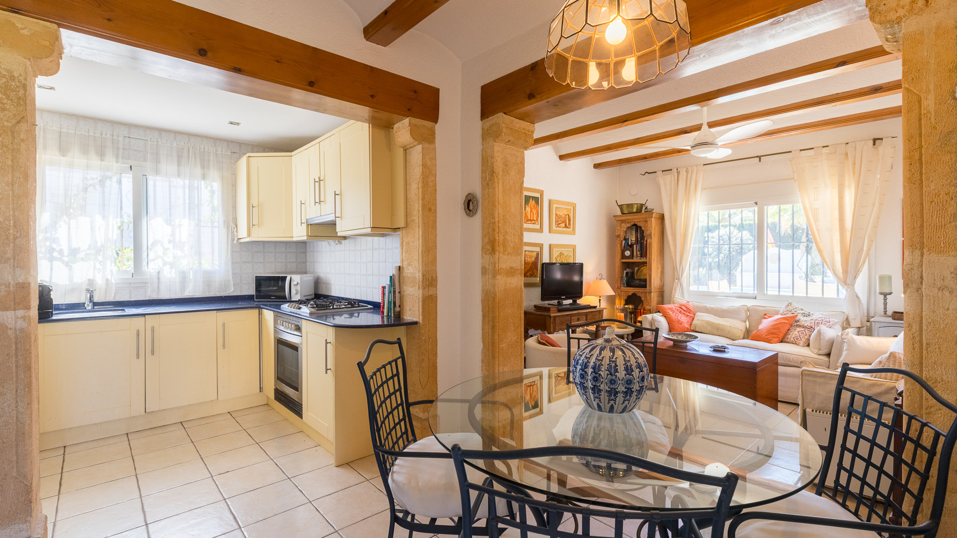 Nieruchomość sprzedawana jest bez umeblowania, co pozwala na indywidualną aranżację każdego pomieszczenia zgodnie z potrzebami lub gustem. Choć nie posiada zamkniętego garażu, do dyspozycji właścicieli jest zadaszone miejsce parkingowe (carport) oraz dużo przestrzeni na terenie posesji do parkowania samochodów. Podsumowując, ta willa w Pinosol stanowi kompleksową i wszechstronną propozycję dla osób poszukujących wysokiego standardu życia i bliskości wszystkich udogodnień w Jávea.