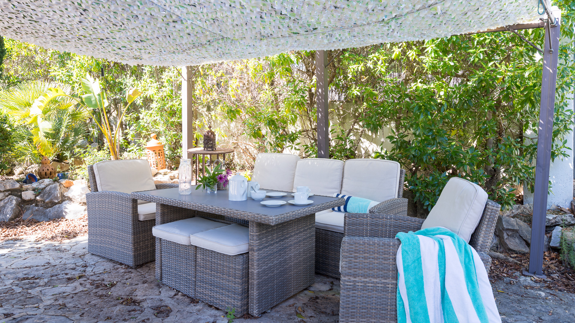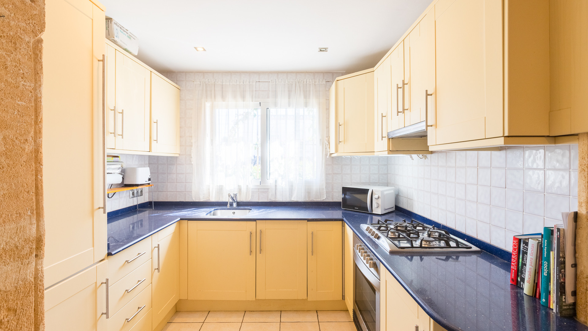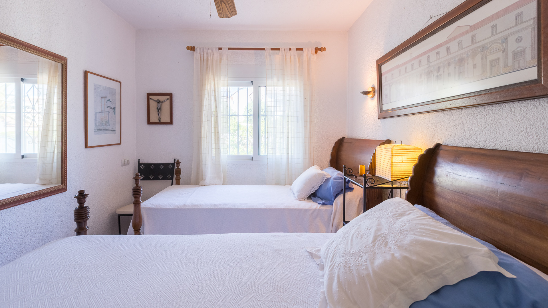 Główna willa posiada dwie sypialnie oraz kompletną łazienkę, odpowiednie do codziennego użytku. Salon połączony jest z przestronnym, prywatnym tarasem, idealnym do korzystania z śródziemnomorskiego klimatu. Nieruchomość znajduje się w dobrym stanie technicznym i wyposażona jest w podwójne przeszklenia, co zapewnia komfort i efektywność energetyczną. Przestrzenie zewnętrzne obejmują zadbany ogród prywatny oraz basen – elementy niezbędne do relaksu lub przyjmowania gości w okresie letnim.